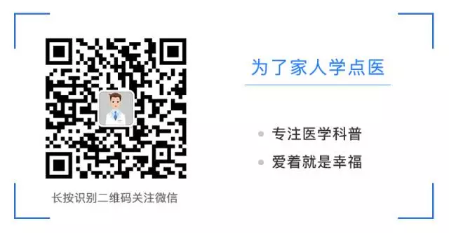 为了家人学点医,爱着就是幸福。想学习更多关于医学科普的知识,可以扫描上方二维码,关注“为了家人学点医”,为爸妈的健康保驾护航!