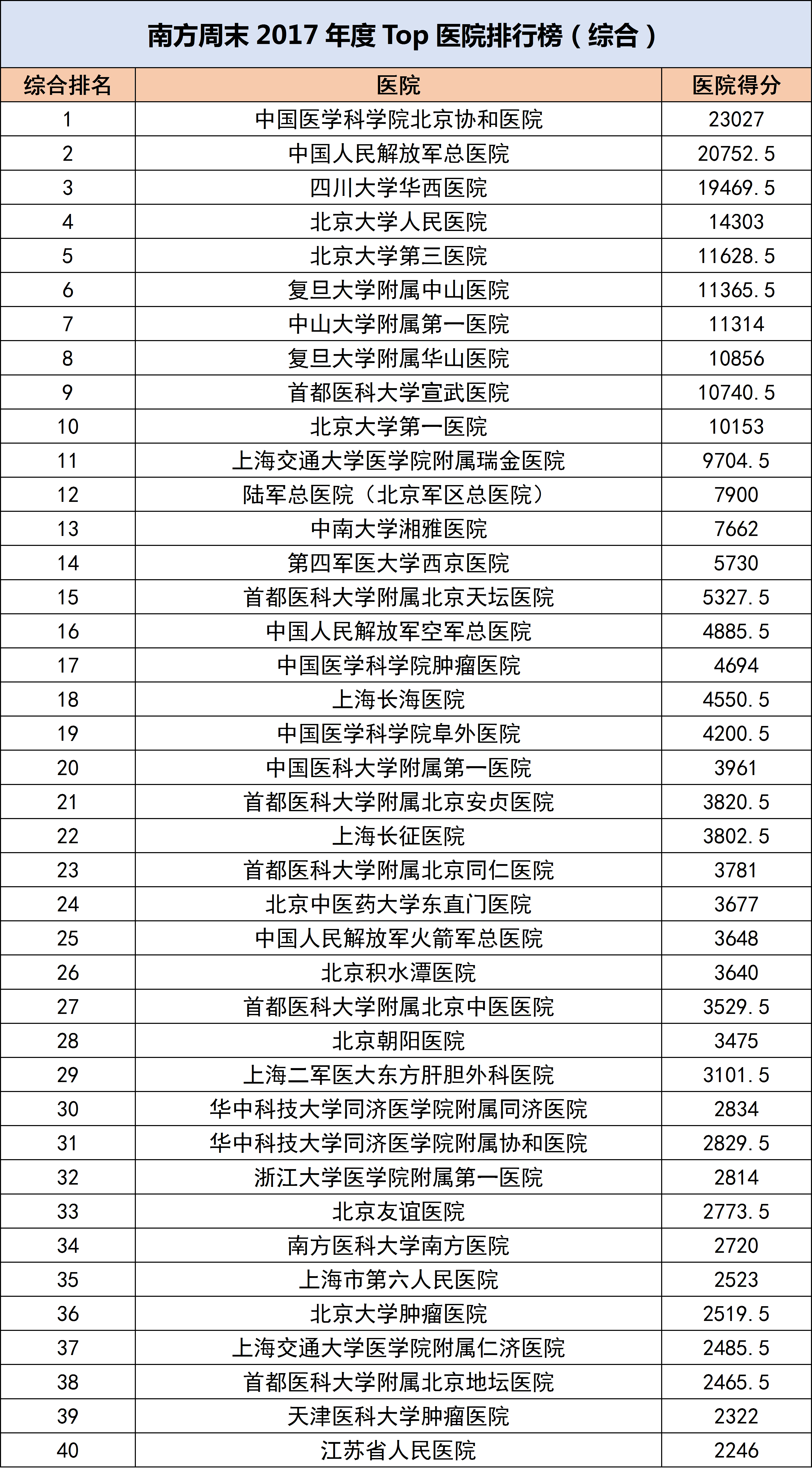【重磅】《南方周末2017年度Top医院排行榜》正式出炉!