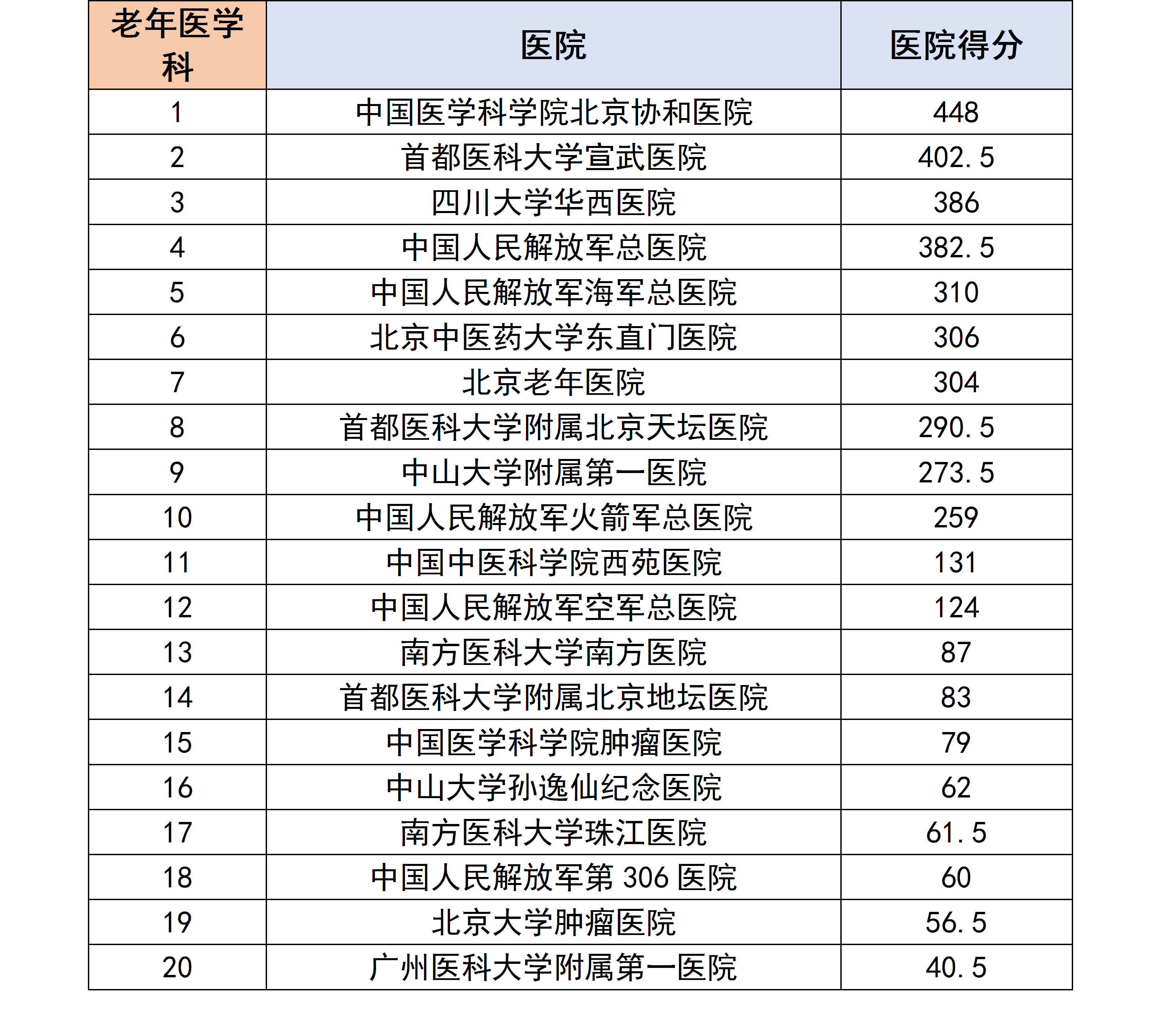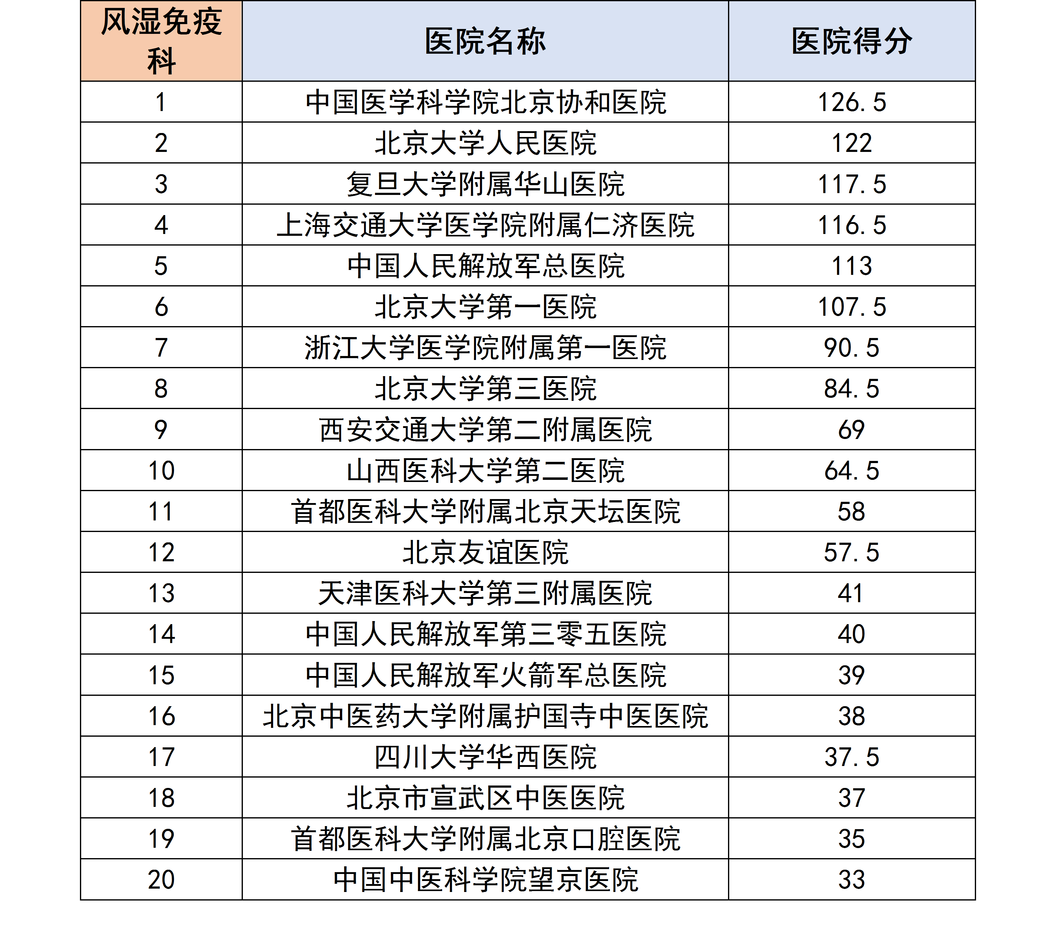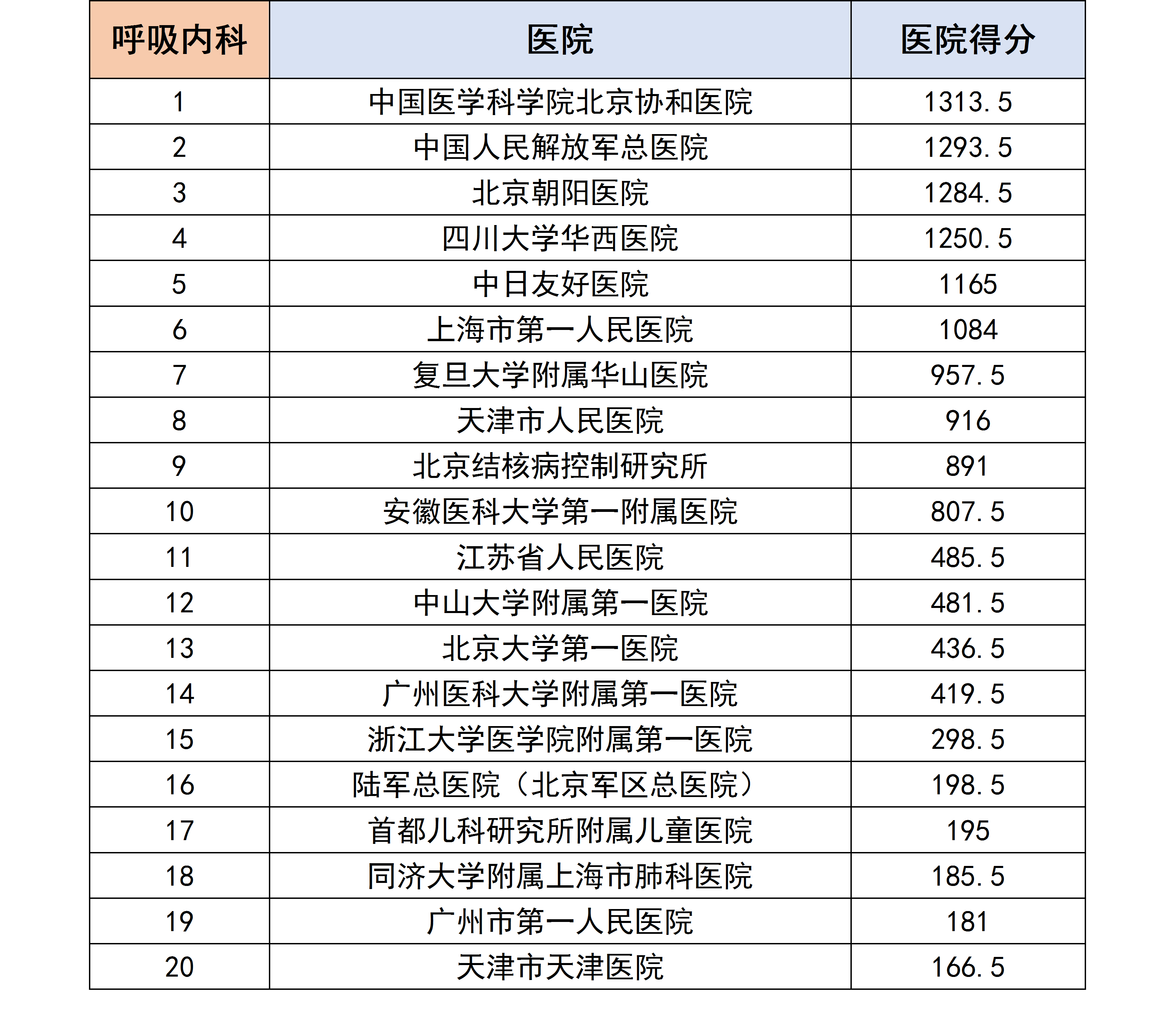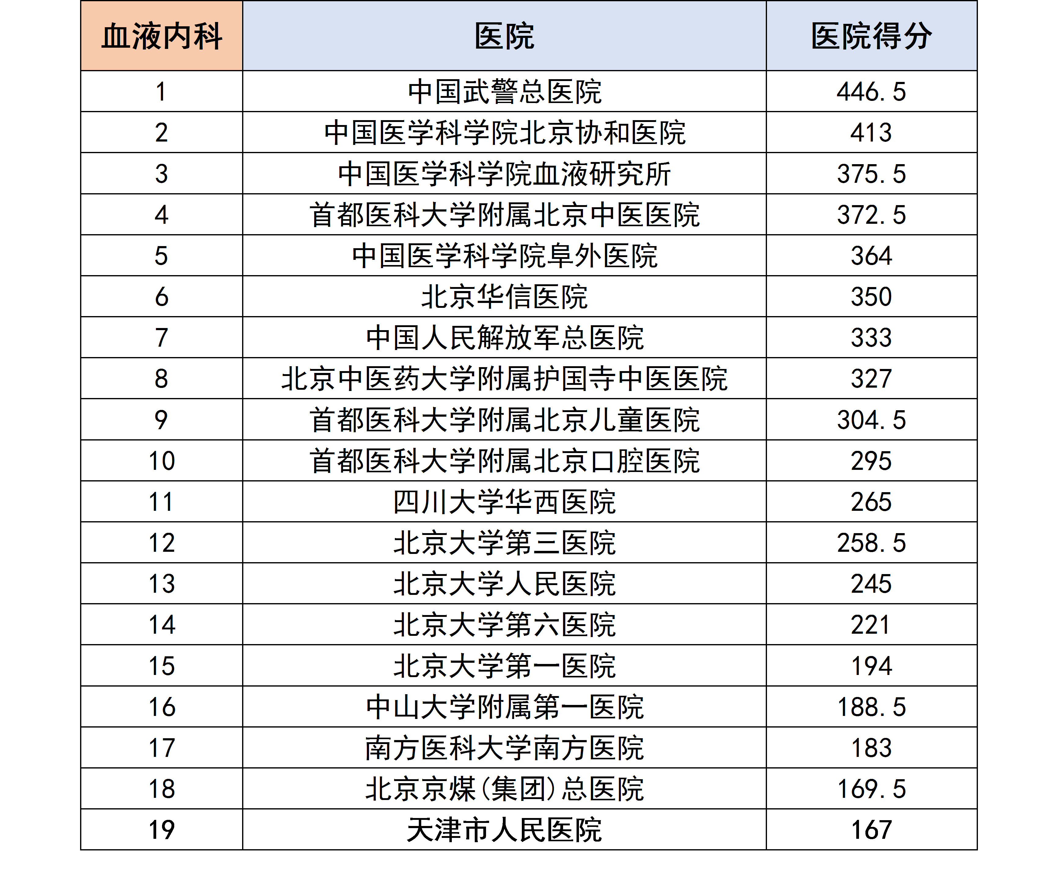 医生们根据自己所在科室,评选和排列出他们认为合理的医院排行榜,我们对各个专科下的医院进行分数统计后,获得了以下专科第一名的医院汇总榜单。