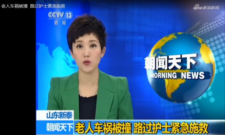 2月28日,山东新泰一位老人被车撞倒,躺在路边。一名医院护士恰好路过,立即上前,将老人侧躺并清理呼吸道异物,保持呼吸道通畅。救护车赶到后,她又将老人送往医院。由于抢救及时,老人保住了性命。该护士说:“对于我来说也是一种激励,遇到这样的事情,我相信我和我周围所有的医务工作者,都会挺身而出,伸出援助之手。”