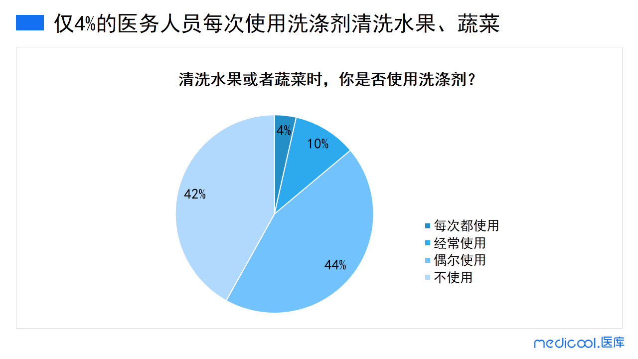 如今,洗涤剂的清洗能力和安全度也在不断地提高。蔬菜水果的洗涤也是所有家庭每天都要进行的工作。但是,多数医务人员是不使用洗涤剂清洗水果或者蔬菜的,仅4%的人会使用洗涤剂清洗蔬果。