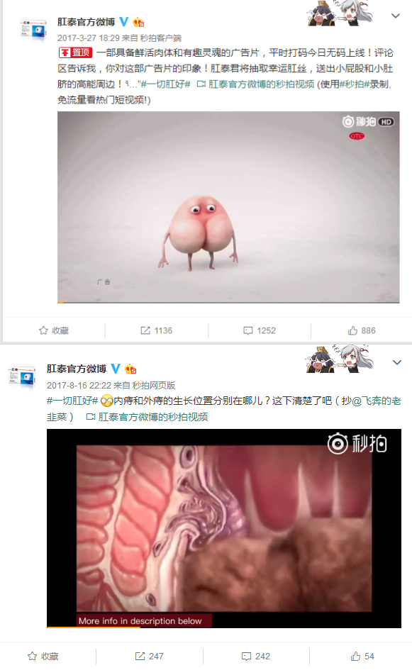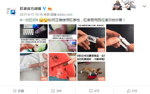 动画:用动画进行痔疮和产品使用的科普,并加上有特色的奖品的转发抽奖,获得了比较好的效果。