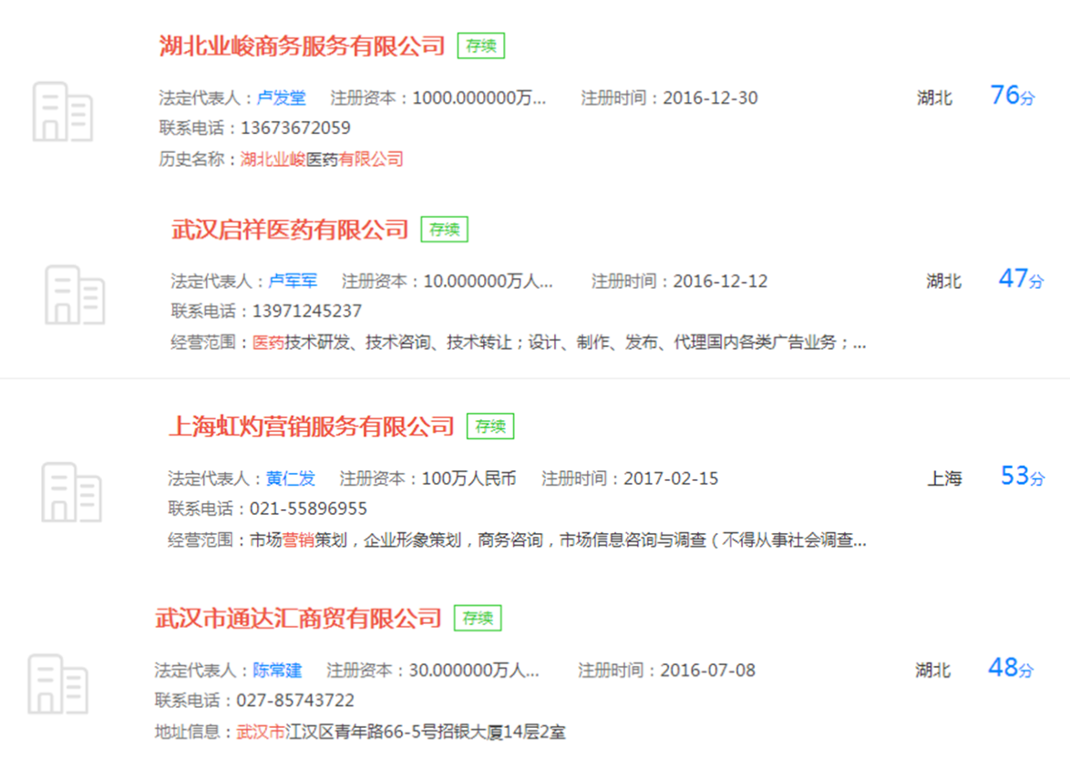 其他注册资本只有10万,30万,100万的小公司也都能开出数量控制在500万左右及以内的推广费用发票。不知道优科医药是如何认定这些成立只有几个月的公司是具备市场推广能力的?付给这些公司高达几千万的推广费用,真的是用于学术推广了吗?那么在之前的一些年选择谁来做推广的呢?