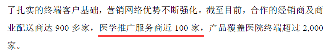 继续翻看招股说明书发现,公司提到,与一百多家医学推广服务商进行了合作,但是却没有在招股说明书上披露任何前五大或者重要推广商的详细情况,至少公开资料没有发现。按照现在的穿透式监管规则,不仅要公司自己合规,直接合作方也需要合规,因此我们对这点存疑。
