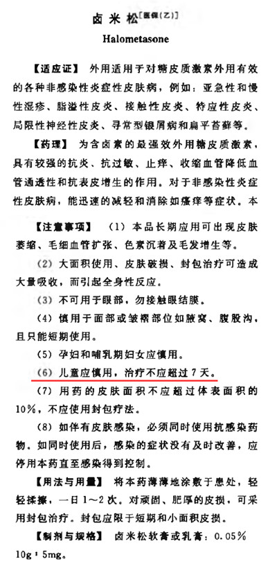 由以上信息可见,诸如卤米松的超强效类的糖皮质激素是不建议向儿童使用的,至少是不推荐长期使用。但香港澳美制药在宣传资料中却写“唯一明确指出儿童可放心使用的激素”确实是会给人带来误导!