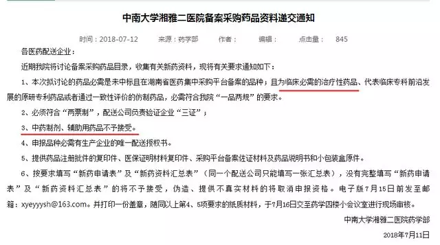 通知中明确表示,采购药品为临床必需的治疗性药品,中药制剂、辅助用药品不予接受。